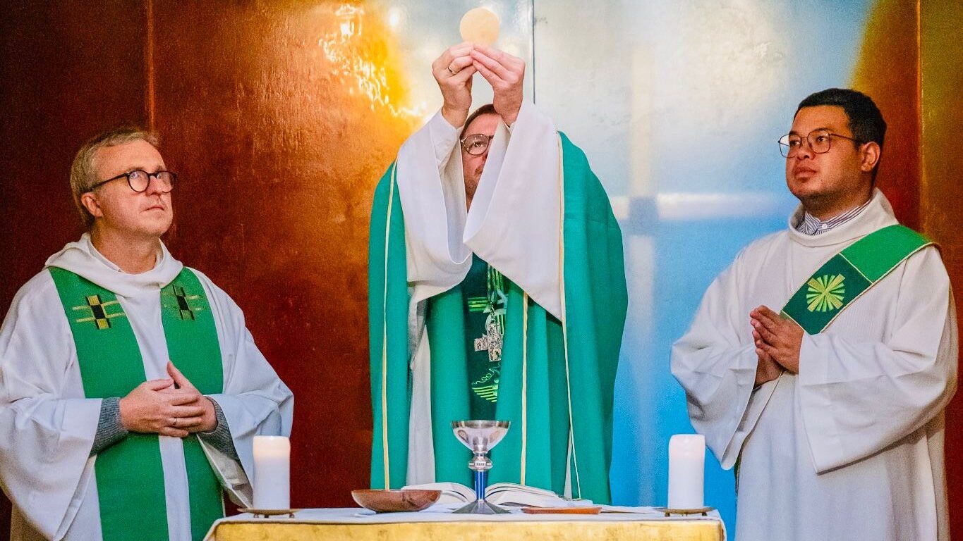 La communauté prie pour le monde, l’Église, les personnes dans le besoin et les intentions particulières.